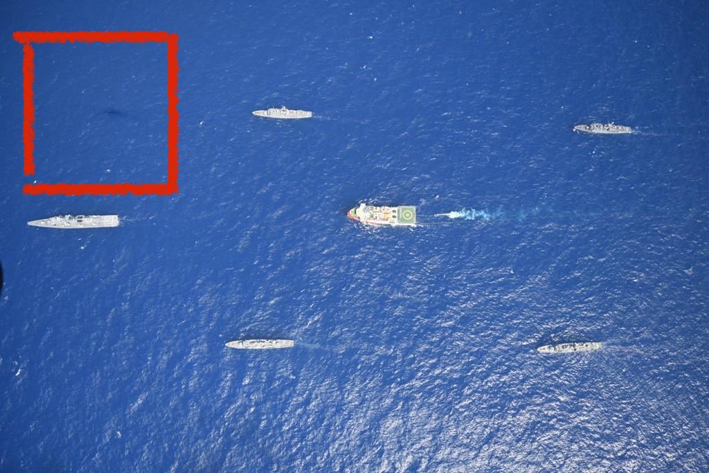 Турки выложили фото как они проводят сейсмические исследования: На фото сопли позади судна - это сейсмическая антенна, та, про которую официальные власти Греции говорят, что её нет. Но самое интересное в квадрата - там турецкая подводная лодка