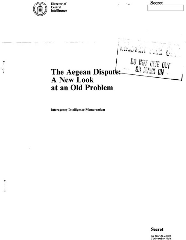 ЦРУ: Эгейское море: новый взгляд на старую проблему Особенно полезным для понимания того, как Вашингтон подходит к «греко-турецким спорам» с течением времени, является секретный меморандум разведки ЦРУ от ноября 1984 года на тему «Спор об Эгейском море: